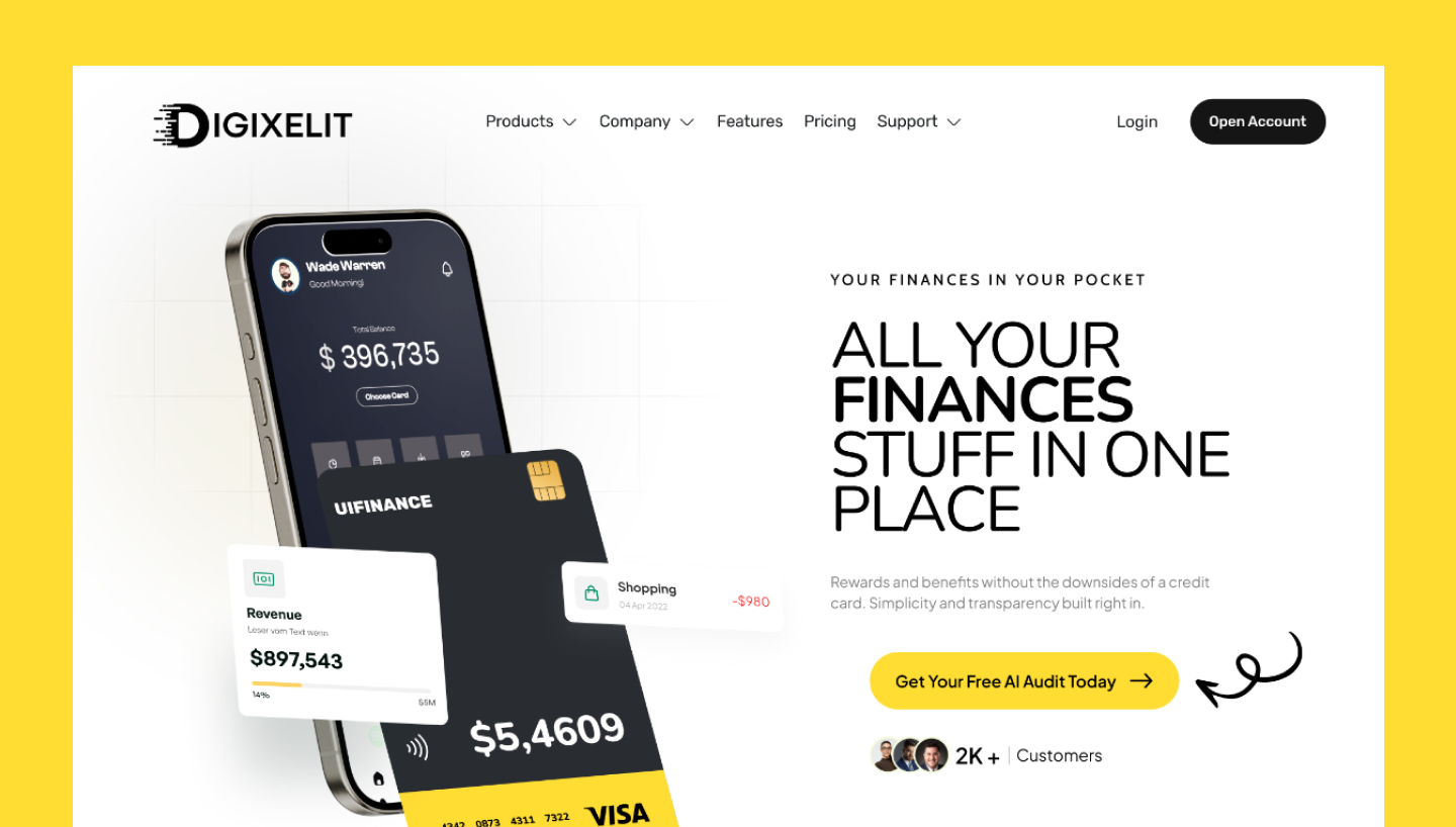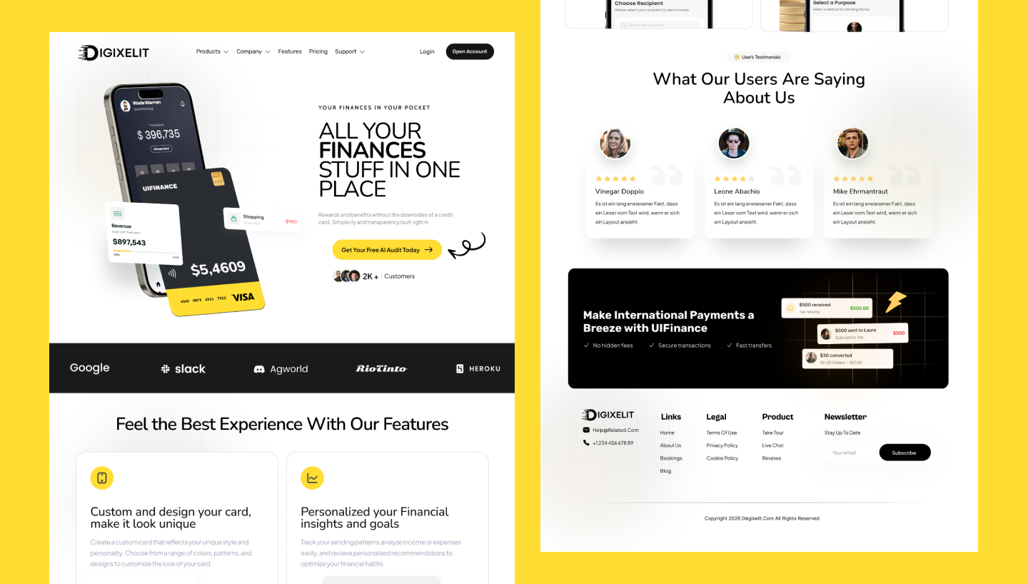 A clean and professional Finance Landing Page UI template designed for promoting financial services, fintech products, banking solutions, and investment platforms. Featuring a modern layout with well-structured sections and clear call-to-action areas, this landing page is ideal for finance companies, startups, banks, and fintech businesses. Available in Figma format, it enables designers to quickly customize layouts and build high-converting finance-focused landing pages.