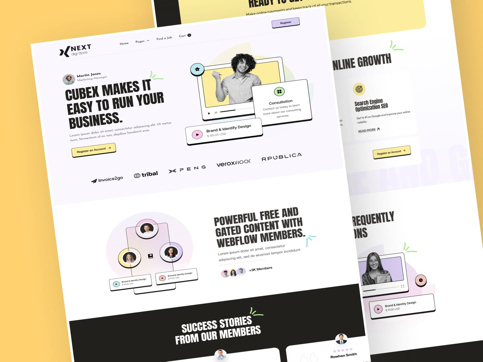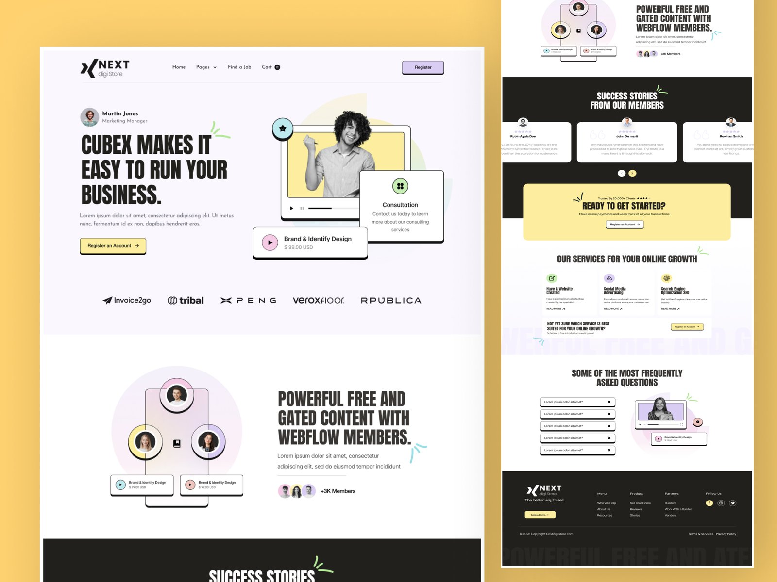 A premium and conversion-focused Membership Landing Page UI template designed to promote subscriptions, memberships, and gated content platforms. Featuring a clean layout, pricing sections, feature highlights, and strong call-to-action areas, this landing page is ideal for SaaS memberships, online communities, fitness programs, courses, and subscription-based services. Available in Figma format, it allows easy customization to create high-converting membership landing pages.