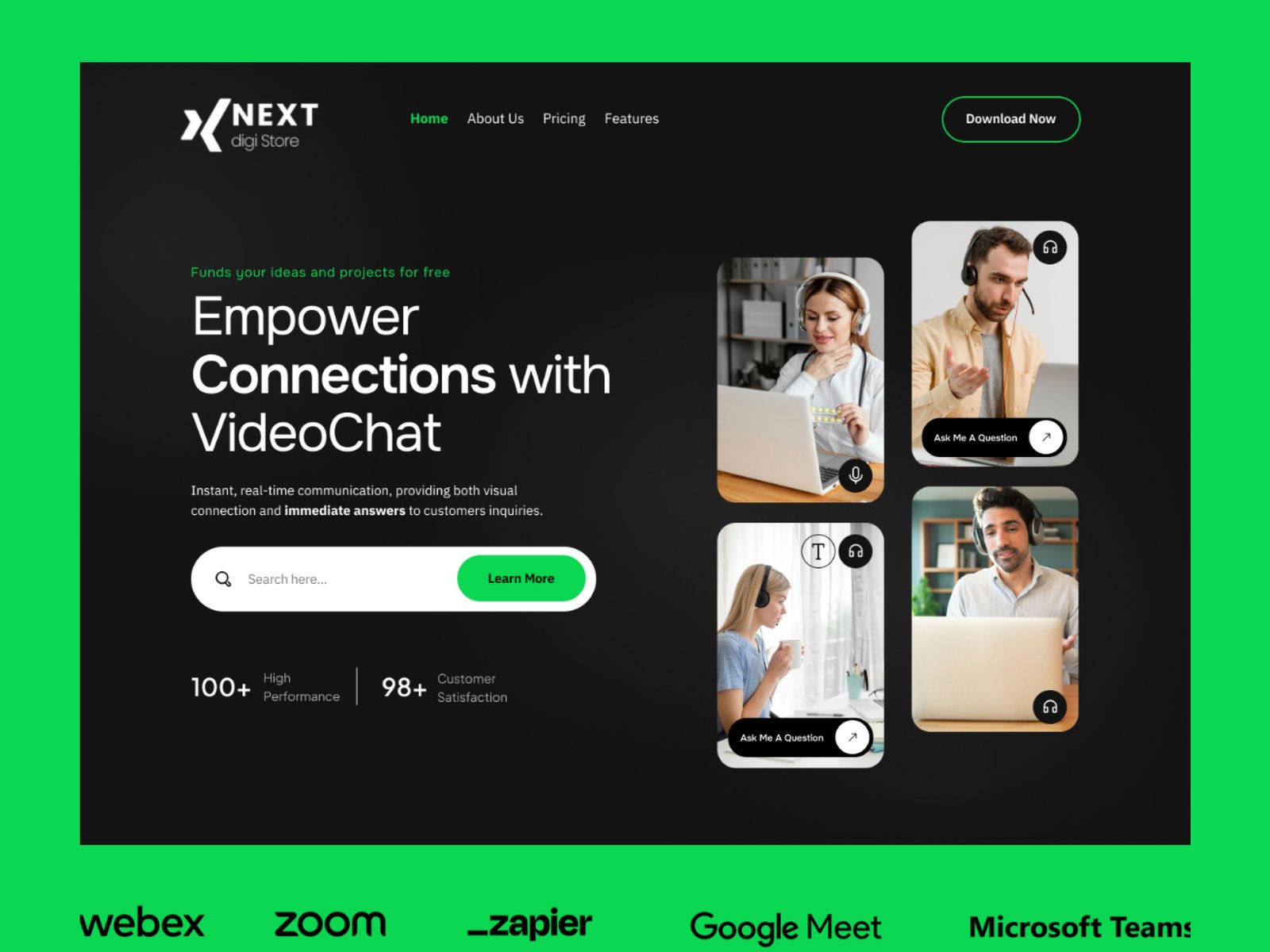 video chat landing pagevideo conferencing uionline meeting landing pagefigma landing pagecommunication platform
