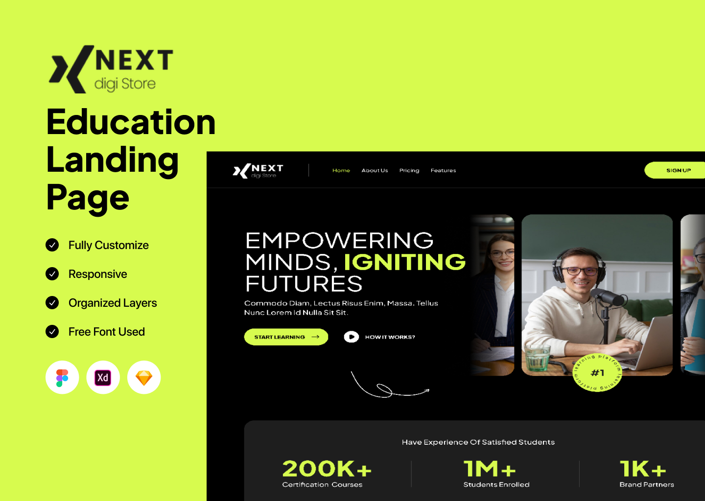 A modern and engaging Education Landing Page UI template designed to promote educational institutions, online learning programs, and training services effectively. Featuring a clean layout, course highlights, learning benefits, and strong call-to-action sections, this landing page is ideal for schools, academies, e-learning platforms, tutors, and educational startups. Available in Figma, XD, and Sketch formats, it allows easy customization to create high-converting education-focused landing pages.